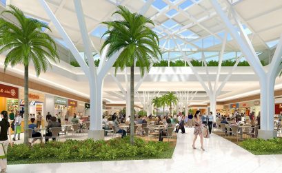 Palmeiras são destaque no paisagismo do Shopping Crystal Plaza, em Curitiba